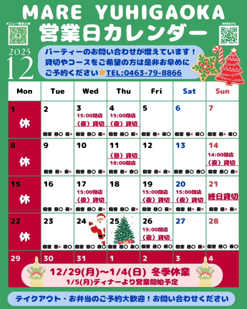 🎄2025年12月営業日カレンダー🎄